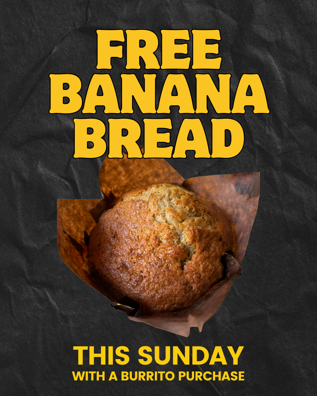 Celebrate our favorite baked good with us on Sunday, 2/22. Free banana bread when you order a burrito!
