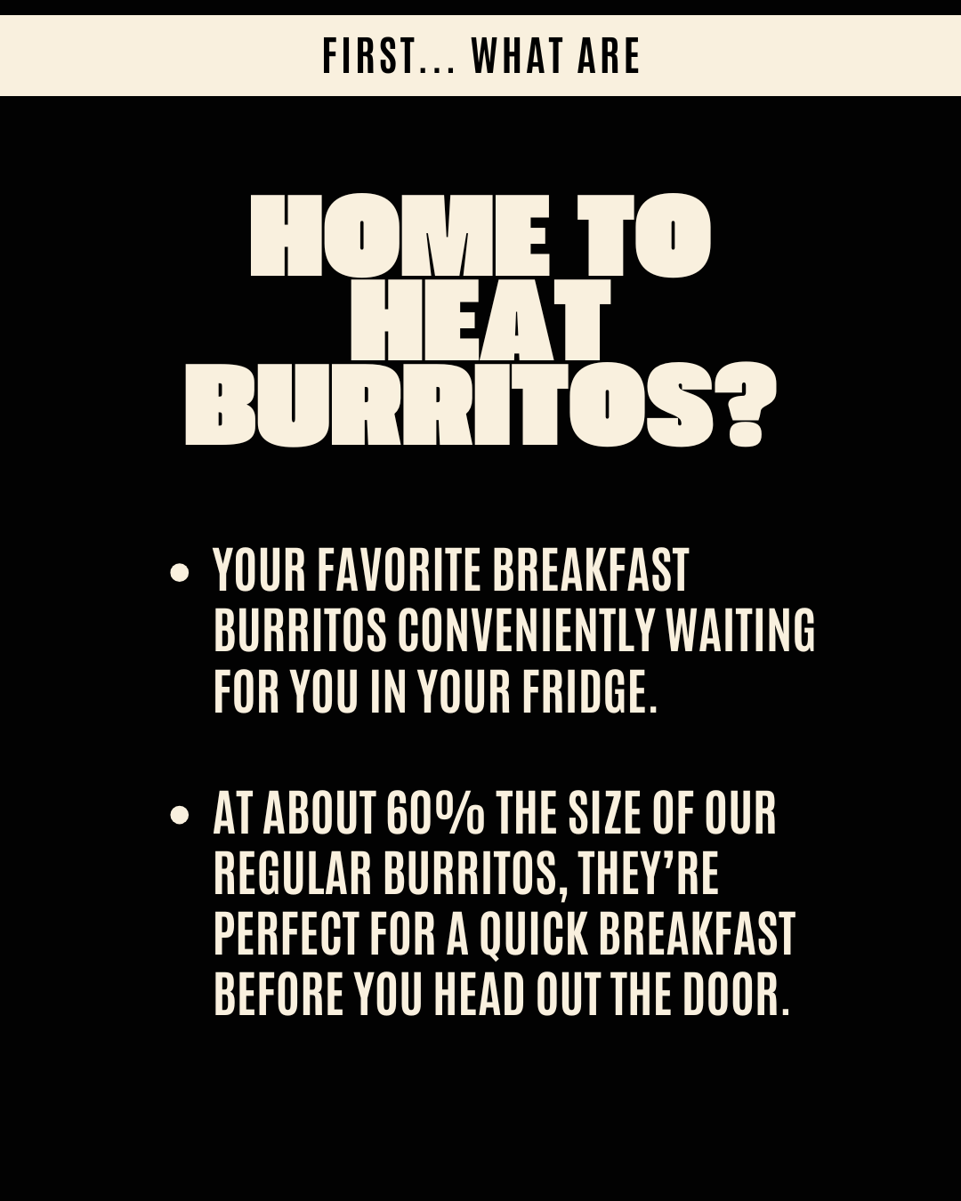 Tip: Take your burrito out of the freezer and into the refrigerator the night before for faster heating in the morning.